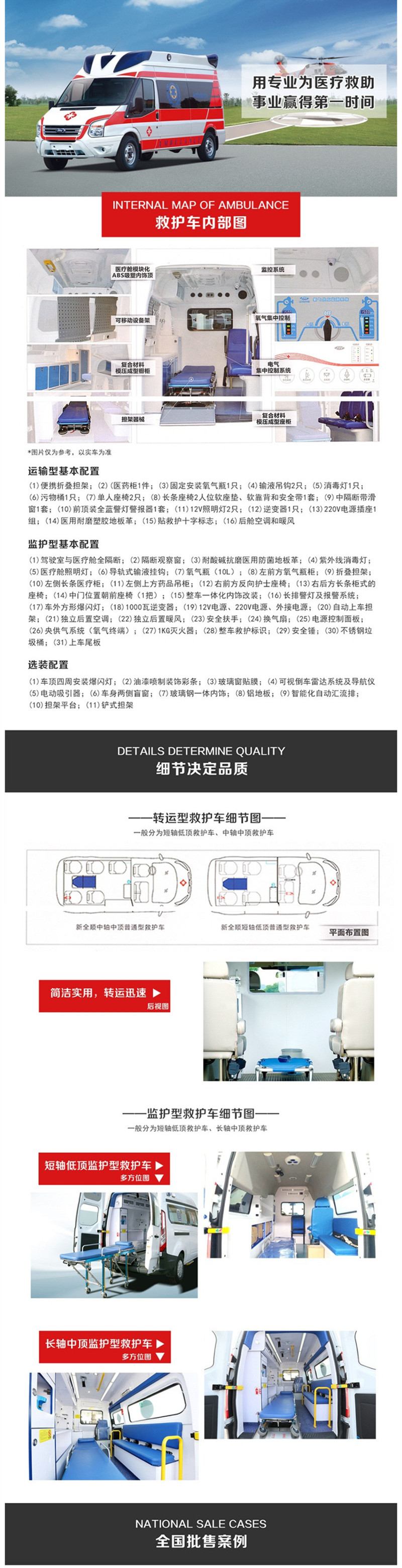 福特新时代长轴ABS一体化内饰救护车