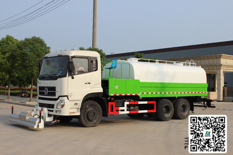 采用圆形结构的水箱,采用Q235碳钢钢板裙边,整车造型新颖、美观大方,罐体尾部工作平台有安全防护护栏,保证工作人员安全性,平台上有爬梯方便操作人员上下车观察罐体内情况。