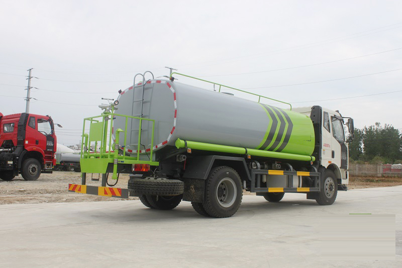 采用椭圆形或者方圆形结构的水罐,整车造型新颖、美观大方,管道上有压力表,方便操作人员随时掌握泵的运转情况。驾驶室和罐体中间有量管,使水罐内的水量一目了然。罐体尾部有操作平台,平台有安全防护栏保障操作人员的安全,平台上有爬梯方便操作人员上下车观察罐体内的情况。