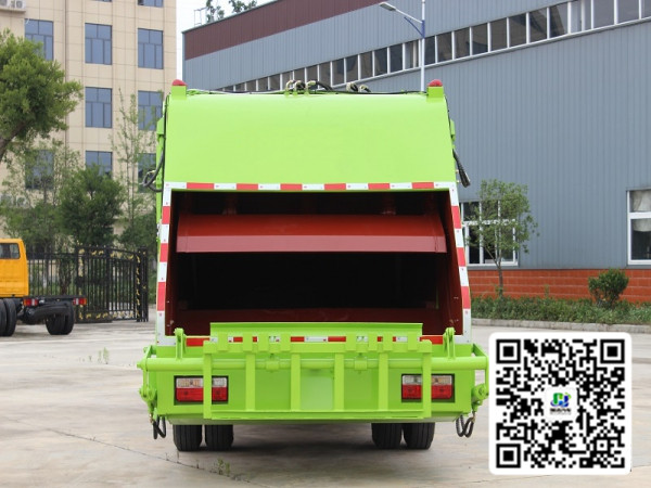 4.翻转机构:选装带垃圾筒(或斗)的翻转机构,吊装多容量的垃圾桶,可配套使用全国铁制挂桶或塑料挂筒,强力装填,把垃圾挤入车厢并压实和推卸。